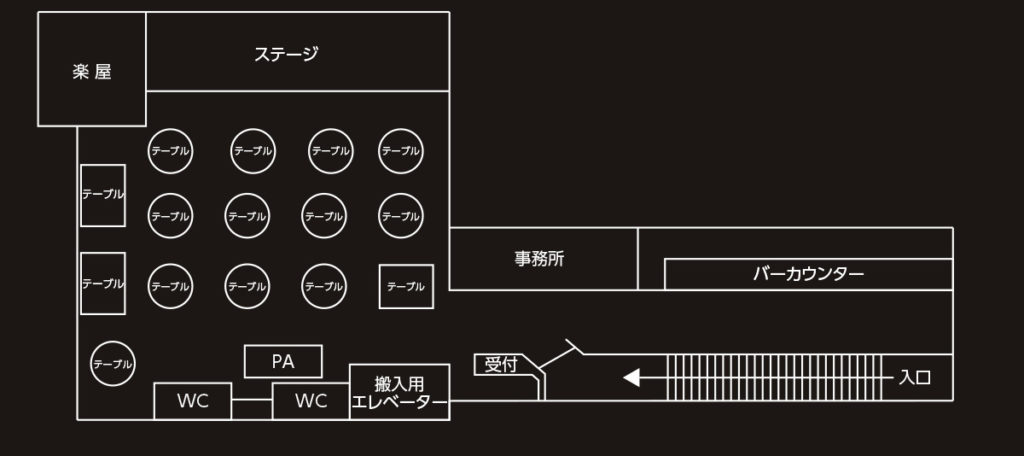 椅子のみの場合↓最大105席~110席(Box席込)