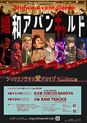 | 12 | 金 | ![]() 娼和アバンギャルド 娼和アバンギャルド ゆうき(Vo)、たろう(Vo)、KWANI(Vo) from ダイナマイトしゃかりきサ?カス 鳥井一広(Dr) 杉浦秀明(Pf) 渡辺淳(Gt) 岩川峰人(Ba) 小泉pat一郎(key) 【チケットご予約方法】 6/28(火)19:00?予約受付開始 《ご予約専用アドレス》 showa.avant@gmail.com ●お名前(ふりがな) ●ライブ日時・会場 ●チケットの種類とお申込枚数(一般or学生) ●電話番号 ●チケット引換方法(当日取り置きor事前発送) 以上をご記入の上、お送りください。 ※事前発送の場合、郵便番号・住所・氏名もご記入ください。 ※事前発送は振込手数料、発送手数料はお客様のご負担となりますので、あらかじめご了承下さい。 ☆こちらのURLからご予約メールが簡単に作成できます!URLをクリックし文中の『メール作成画面はこちら』という文字をクリックするとご予約メールがスムーズに作成できます。 《大阪公演簡単楽々予約メール作成URL》 http://mail-to.link/m8/a9i6ne ◎本公演はライブ当日のガイドラインに沿って運営をさせて戴きます。 大声を出さないライブとして100%の収容人数にて開催をさせて戴きます。 ◎ご来店時、消毒?検温を実施させて戴きます。 37.5度及び咳症状の見られるかたにはご入場をお断りする場合がございます。 ◎会場内はお飲物を召し上がる時以外は、必ずマスクの着用をお願い致します。 ◎会場には喫煙室はございませんのであらかじめご了承下さい。 【主催】(株)ベストプロデュース 【制作協力】オフィス串 |