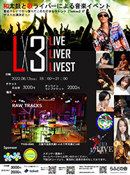 3000yen (drink代要別途) ▼オンラインライブチケット 2000yen |