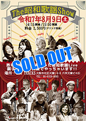 | 9 | 土 | ![]() The 昭和歌謡Show ありがとうございます。SOLD OUTとなりました。 |