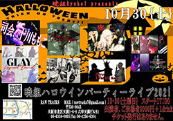 | 30 | 土 | ![]() 暁組ハロウィンパーティー2021 出演shiry&The Ark Mars Lady Sohenker 鵺 The 69ers GLAYrespect band 野崎豊 O.A 十川ももこ MC 十川ももこ |
